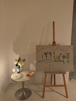 An intimate, arts‑driven evening that transformed Attic Loft Studio into a working artist’s atelier. Together with painter Ofpuga, I staged the space with canvases, pigment trays, and brushstrokes across the tablescape, inviting a select group of creatives to dine surrounded by inspiration.